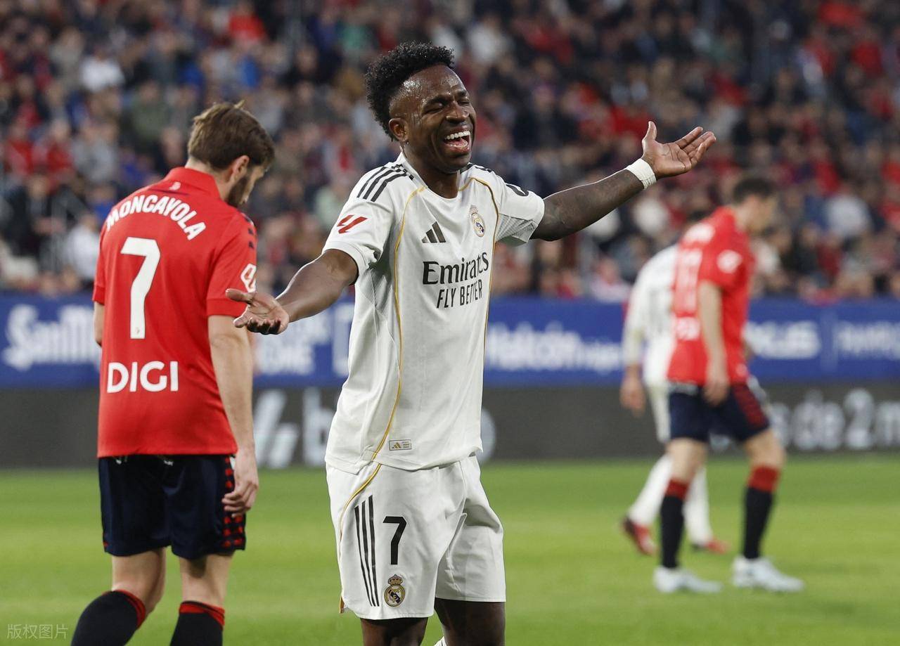 下半场第28分钟,巴尔韦德妙传,维尼修斯在门前包抄破门帮助皇马扳平比分。
